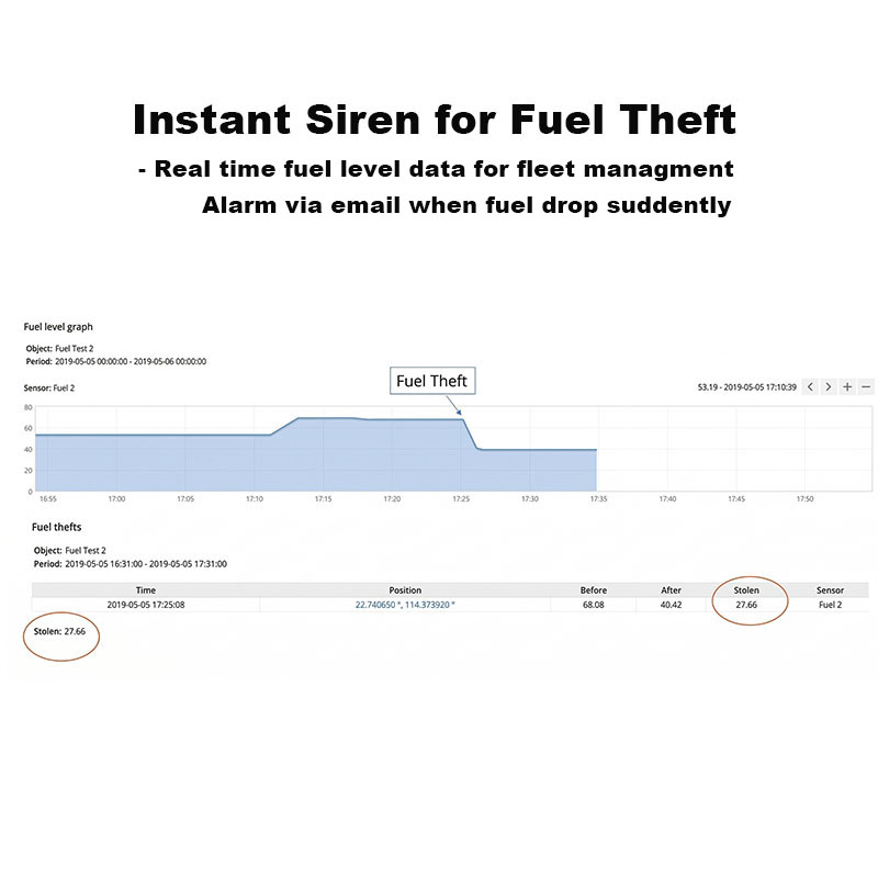 This Bluetooth external ultrasonic fuel level sensor can be used alone,viewing data via screen. Or match GPS tracker,fleet MDVR connecting to platform and view real time fuel consumption,data statistics, report analysis,anti fuel theft.